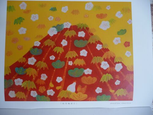 *伊藤香奈さんの今年のカレンダー。 松竹梅の中に混じって、干支の酉が描かれていました。エネルギーに満ちています!今年も何人かの方から、伊藤香奈カレンダーが欲しい・・・ というリクエストがありました。香奈さんは昨年は新橋のパークホテル東京の壁…