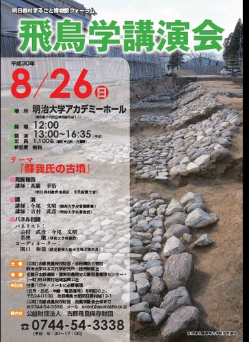 期日 平成30年8月26日(日) 場所 明治大学アカデミーホール (東京都千代田区神田駿河台1-1) 時間 12:00開場 13:00開演 〜 16:35(予定) 定員 1100名 参加費 無料主催 古都飛鳥保存財団・奈良県明日香村 明治大学日本古代学研究所 ・ …